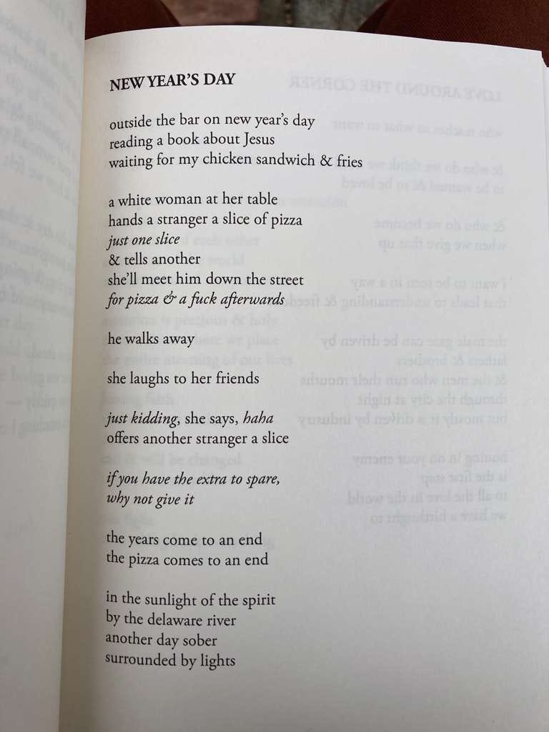 To answer the final line in Works & Days, “What is it that keeps you alive” — Recovery. Taking walks. Talking to my friends. Sharing meals. My family. Swimming. Reading books from people I admire. Sharing other people’s work. Going to church. Good sermons. Praying. Meditation which I forget to do. Affection. Creating. Looking at art. Being offline. Being of service. People watching. Dancing. Nature. Drinking water. Getting really good sleep (rare). Learning something new. Seeing something new. Exploring. Meaningful work. Getting my head out of the mega spiral and back into the world.